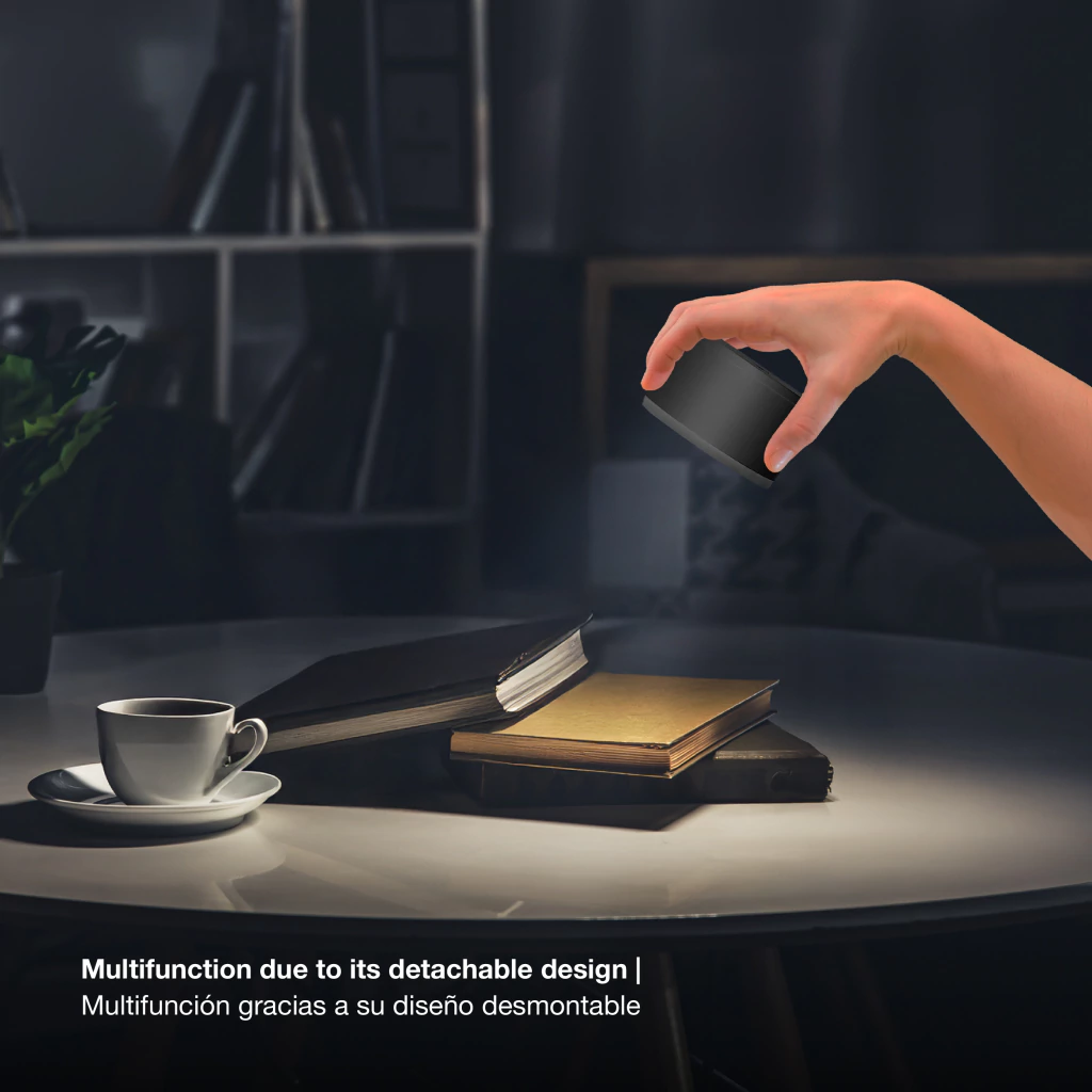 Nuestra Lámpara Velador Magnético color negro es una luz multifuncional y única que viene con 3 accesorios que te permiten usarla como luz de trabajo, de lectura, de emergencia, etc. Sus aplicaciones son infinitas dado que su cabezal se puede acoplar fácilmente a las esferas metálicas provistas en cada accesorio. Su diseño esférico permite una rotación de 360° que le permite ajustar la luz en cualquier dirección.