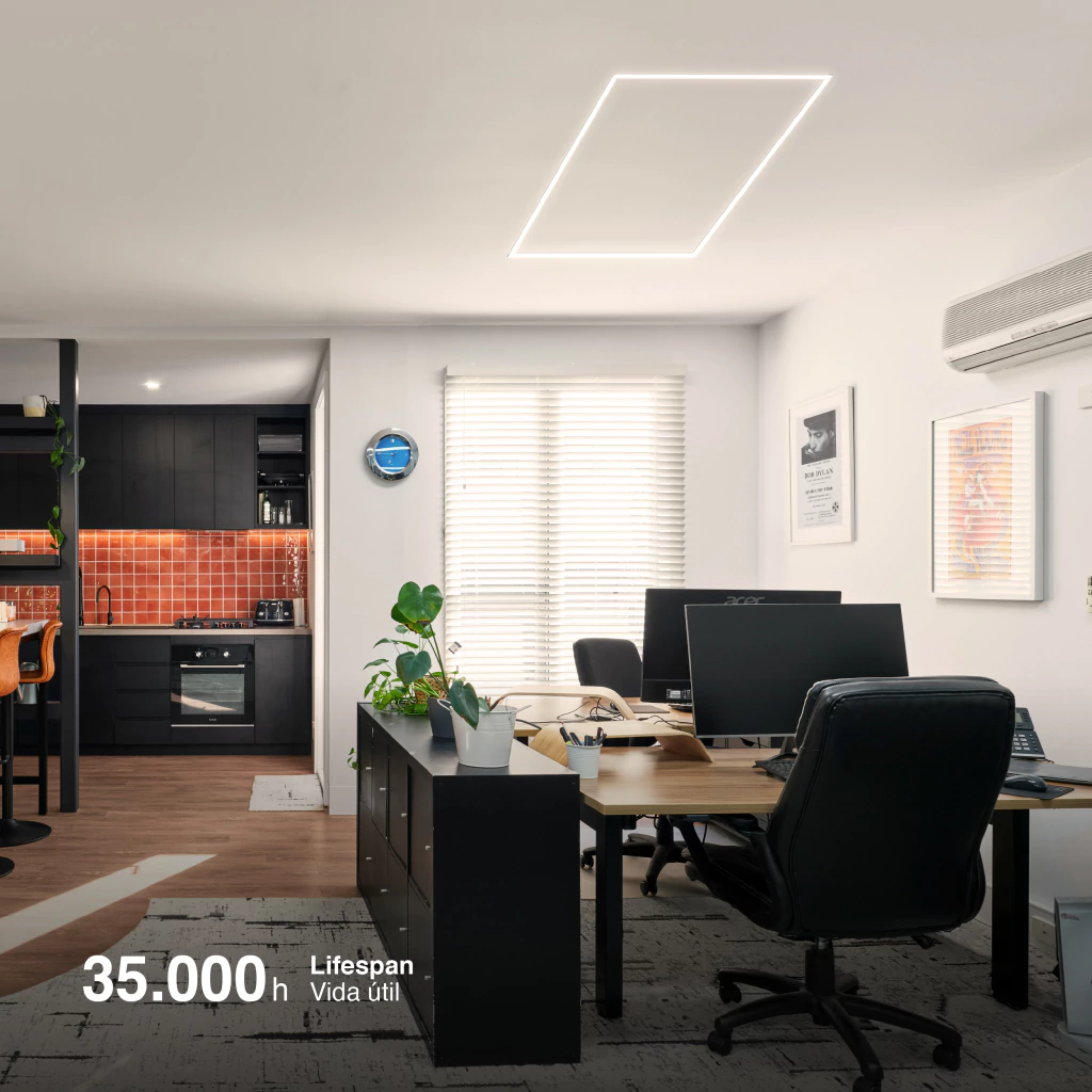 Diversas Aplicaciones: Este marco luminoso es ideal para la iluminación de interiores modernos tales como oficinas, hoteles, y, gracias a su diseño innovador, puede ser usado en espacios industriales e interiores de hogares como en muebles de cocina, armarios y nichos de pared.
