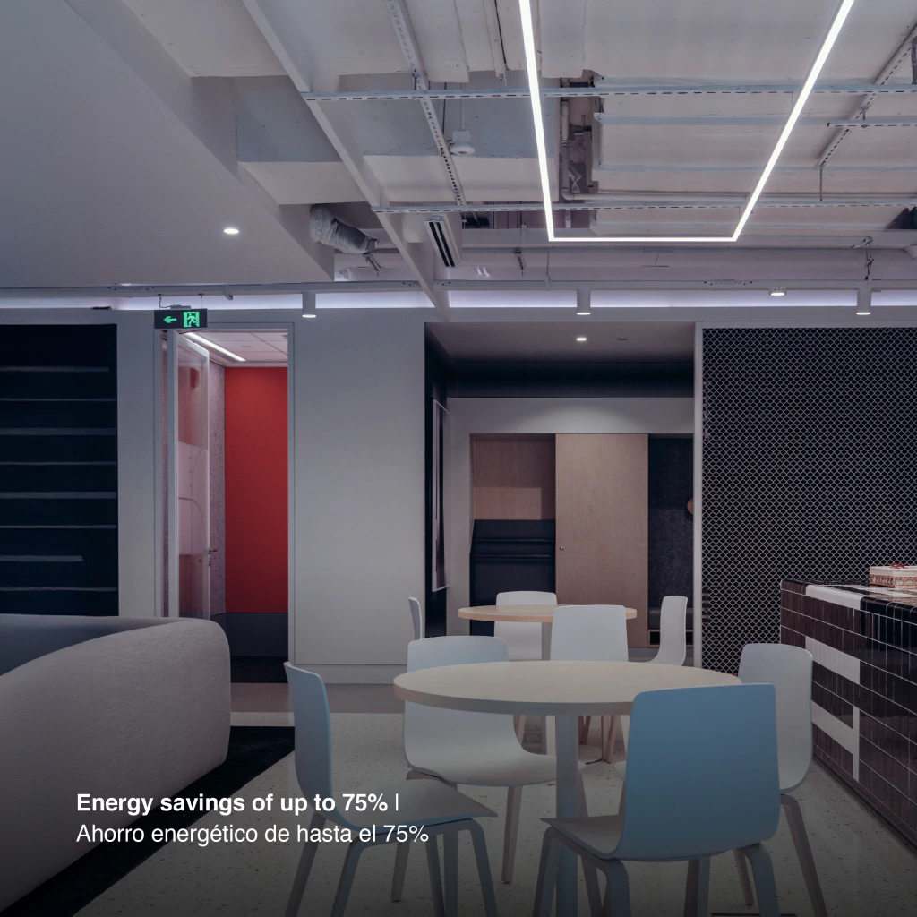 Diversas Aplicaciones: Este marco luminoso es ideal para la iluminación de interiores modernos tales como oficinas, hoteles, y, gracias a su diseño innovador, puede ser usado en espacios industriales e interiores de hogares como en muebles de cocina, armarios y nichos de pared.