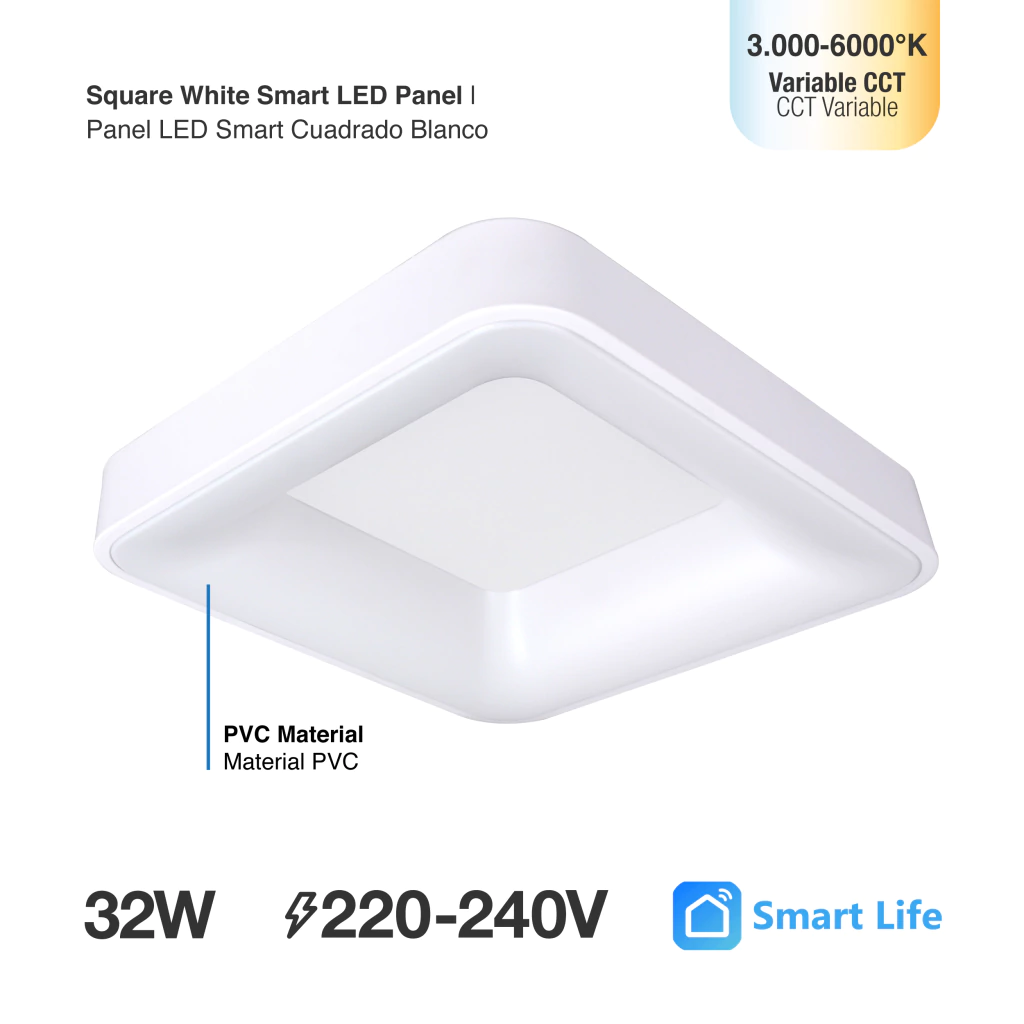 Panel LED Smart Cuadrado Blanco 40x40x9cm 32W 140mA CCT, de Aplicar