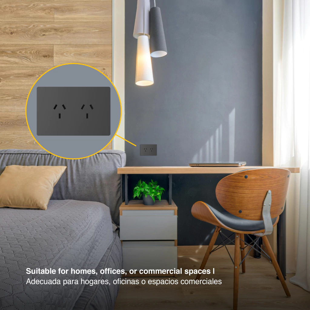 El Tomacorriente Doble es una solución práctica y elegante para instalaciones eléctricas residenciales o comerciales. Diseñado para ofrecer funcionalidad y estética, este módulo permite la conexión simultánea de dos dispositivos eléctricos, optimizando el espacio y facilitando el acceso a la energía.